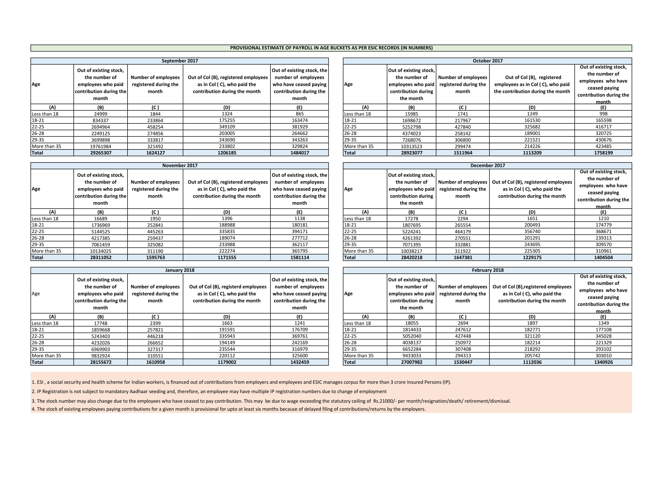 PROVISIONAL ESTIMATE OF PAYROLL IN AGE BUCKETS AS PER ESIC RECORDS (IN NUMBERS) dated 25.4.2018 size:(247.82 KB)